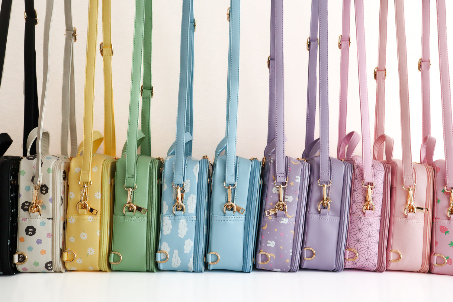 Everyday ita bags in solids colors and cute print patterns, with snap on window covers.